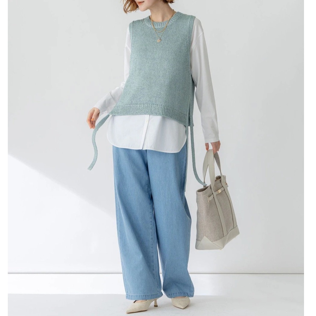 インナーとの素材のコントラストを楽しむニットベスト◎