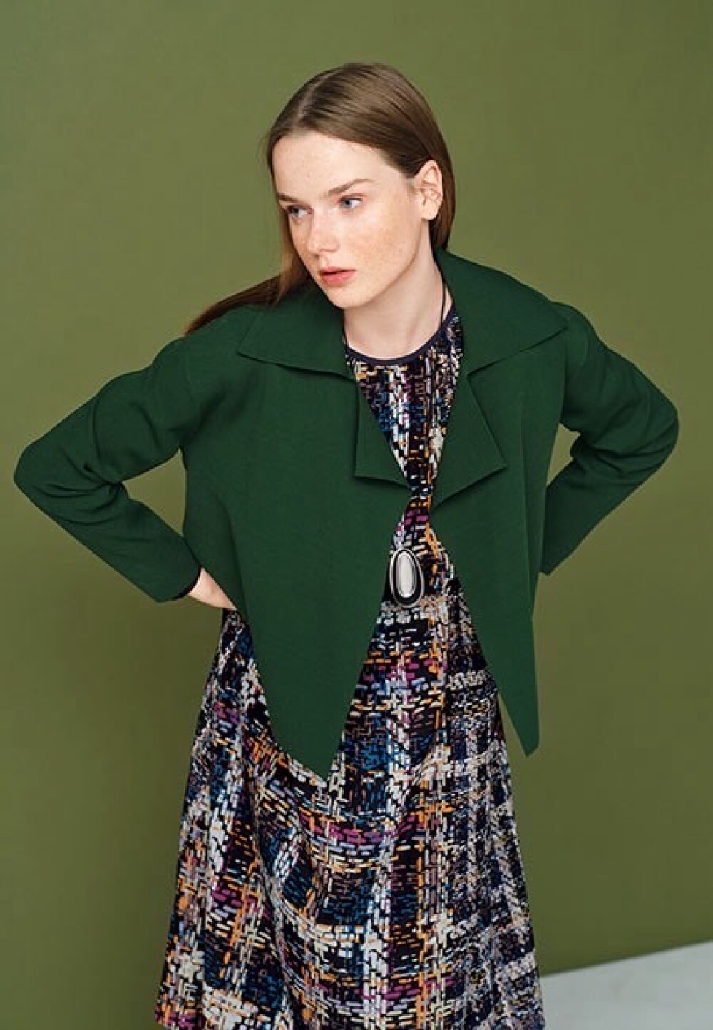 扱いも楽で、キチンと見えるするニットジャケットです。